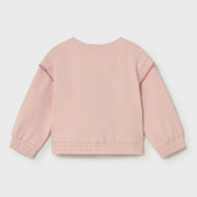 Mayoral baby girl's zip up jacket, in soft pink with darker pink embroidered seams on the sleeves and front pockets.