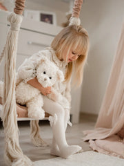 Girl's cream coloured tights by Condor, made from a comfortable cotton blend, they have a matching cream ribbon bow at the knee.
