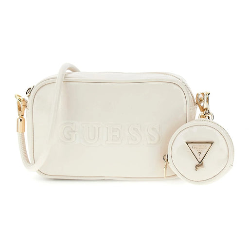 Guess girl's cream white cross body camera bag, made using a soft faux leather with chevron pattern stitching, it features gold hardware and black ...