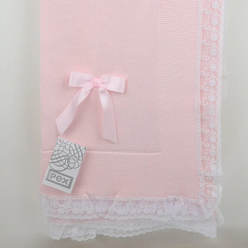 This baby girl's knitted shawl from Mayoral comes in a soft pink colour and has a frilled edges. Made using a cotton viscose blend. Code: 9020