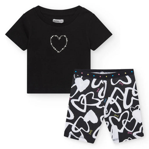 Girl's two piece t-shirt and skirt set from Tuc Tuc. This eye catching outfit includes a bright red long sleeve t-shirt with a large heart print on...