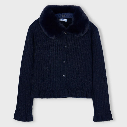Mayoral girl's long sleeve top, in charcoal black with black satin petals along the hem. Code: 7030