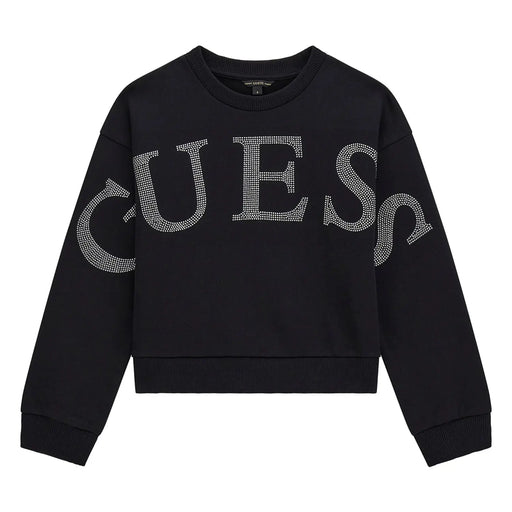 Girl's round neck sweatshirt from Guess, in jet black with a large silver rhinestone logo across the chest. Crafted from 100% cotton. Code: j5yq09