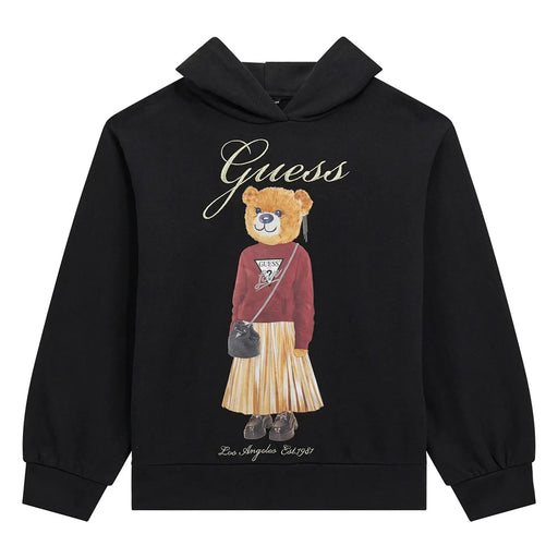 Guess girl's hoodie, in jet black with a silver foil triangle logo on the front. Crafted from 100% cotton. Code: j83q14