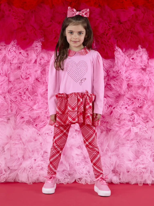 Girl's two piece t-shirt and leggings set by Guess, includes a bright blue long sleeve t-shirt with a navy and white heart logo on the chest. This ...