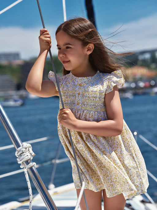 This gorgeous floral dress by Deolinda is a wonderful blend of traditional style and sunny summer colour. Featuring intricate smocking across the c...