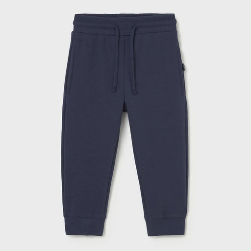 These baby boy's jogger pant by Mayoral come in charcoal black and have a pockets front and back. Made from a stretchy cotton fabric, they have cuf...