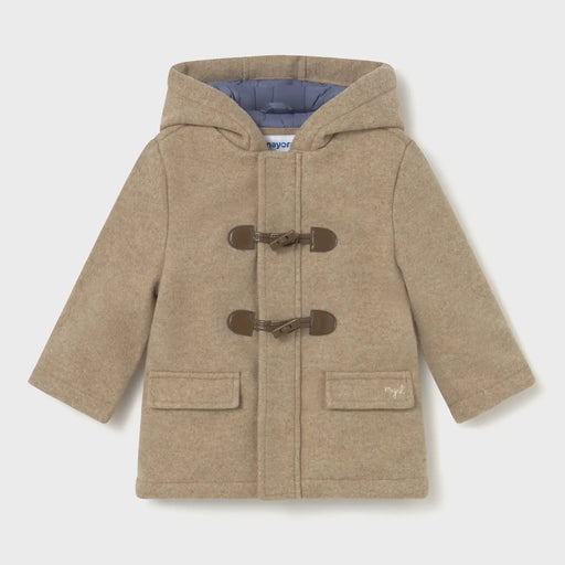 Baby boy's classic duffle coat by Mayoral. Made using a soft melton fabric in light blue, it has the classic duffle coat toggle fasteners, and also...