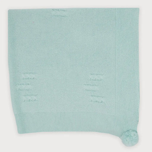 This beautiful knitted baby shawl from Sardon comes in a pale green colour, and is decorated at the corner with a matching green pom pom. Code: 25...