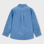 Made using a soft cotton blend, this mid wash denim shirt from Mayoral has a single chest pocket, sleeve tabs, and a small logo patch on the placket.