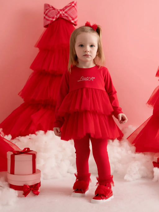 Guess baby girl's elegant dress and leggings set, includes a short sleeve dress and a pair of comfy full length leggings. The leggings are patterne...