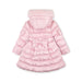 Girl's long winter coat from A Dee. This beautiful coat comes in a pale pink colour and has a silky sheen finish. It has warm, padding and a faux fur trimmed hood which make it perfect for chilly winter weather.