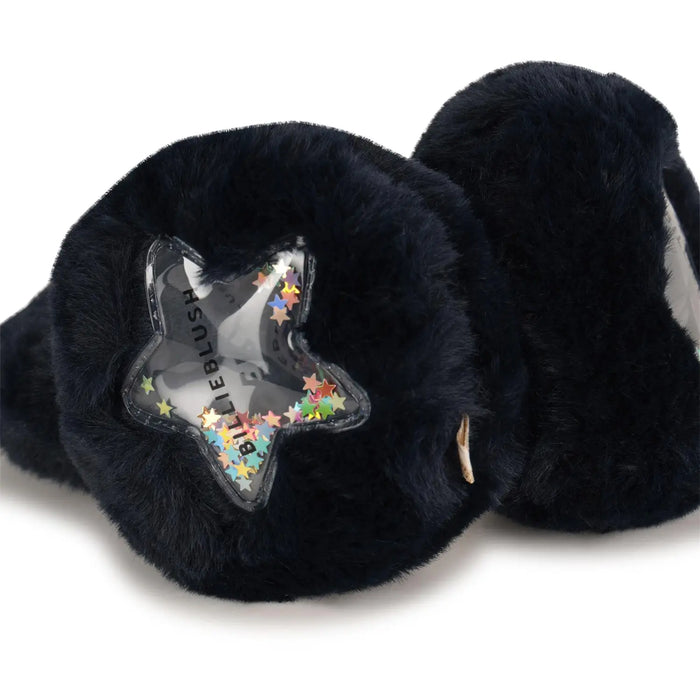 Billieblush girl's dark navy faux fur ear muffs. These comfy ear muffs feature a transparent star logo on the ear pads, with small colourful stars inside.