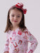 Daga girl's ribbon bow headband, featuring both red and silver glitter ribbons tied in a bow and set on a silver glitter band.