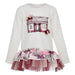 Daga girl's stylish tunic and leggings set, includes a long sleeve white tunic with a frilled tulle skirt, and a pair of matching white leggings with an all over fashion themed print.