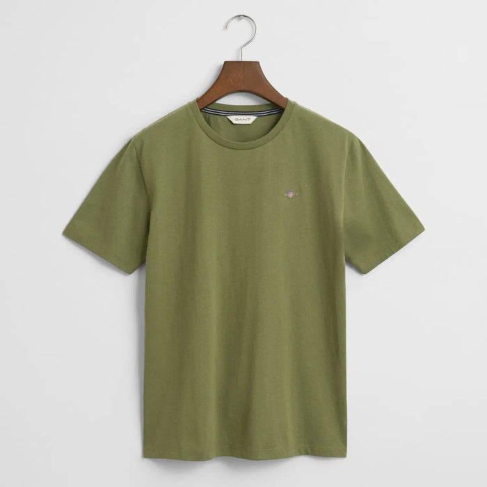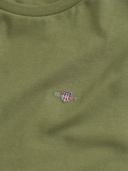 Crafted in soft, breathable cotton, this short sleeve t-shirt comes in olive green and features the classic GANT shield logo embroidered at the chest. A versatile piece, it pairs perfectly with everything from sweatpants to jeans and more.