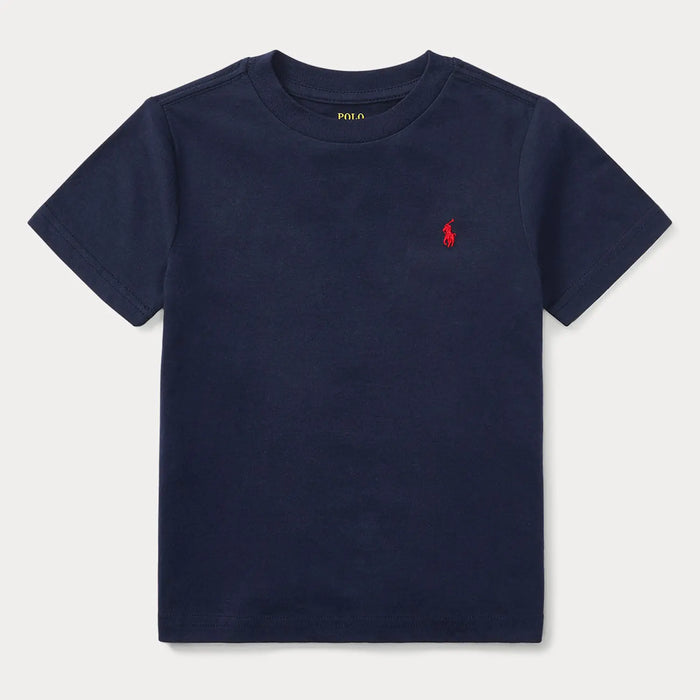 Ralph Lauren boy's classic t-shirt, in navy blue with a red embroidered pony on the chest.