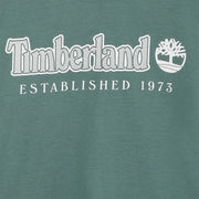Timberland boy's short sleeve t-shirt, in forest green with a white logo printed across the chest.